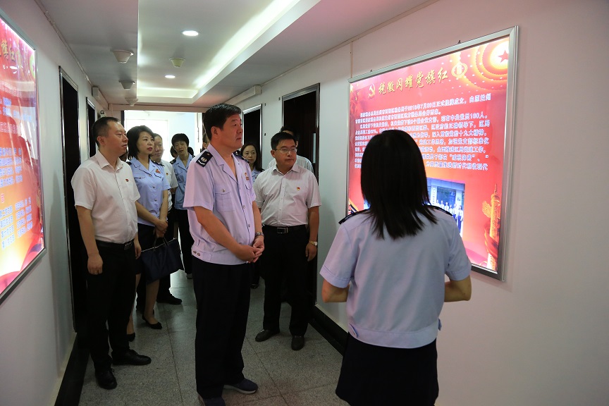 八月1日早上九點,蘭州市稅務(wù)局機關(guān)第八黨支部和公司機關(guān)黨支部一行20余人來到西固區(qū)稅務(wù)局參觀黨建長廊和第六支部的黨建陣地。參觀過程中,詳細(xì)介紹了西固稅務(wù)自機構(gòu)改革以來在黨建工作方面取得的成就、亮點和品牌文化,實地觀摩了支部黨建陣地建設(shè),查閱了學(xué)習(xí)基礎(chǔ)臺賬及相關(guān)資料,了解了黨建融合企業(yè)、黨員特色隊伍建設(shè)等新思路、新做法。參觀結(jié)束后,大家一致認(rèn)為,西固稅務(wù)黨建文化陣地特色濃,黨建服務(wù)品牌標(biāo)識亮,讓參觀人員內(nèi)心既受到震撼,思路又進一步得到拓寬。