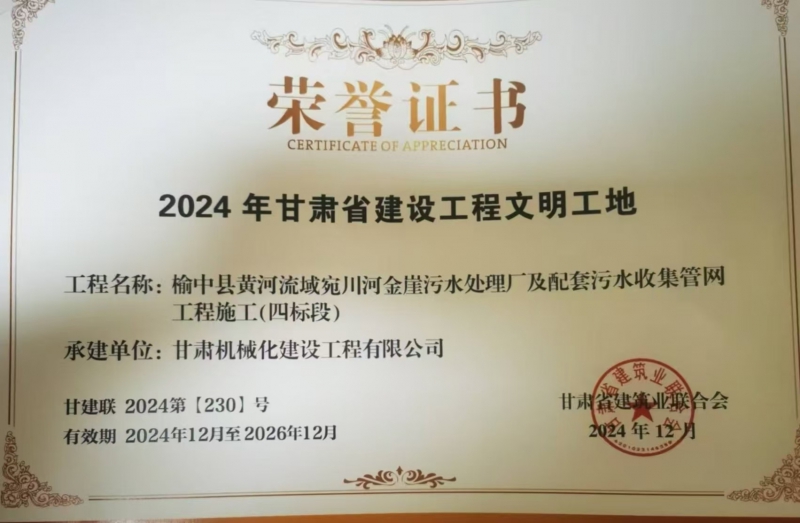 榆中縣黃河流域宛川河金崖污水處理廠及配套污水收集管網(wǎng)工程施工-2024 年甘肅省建設(shè)工程文明工地